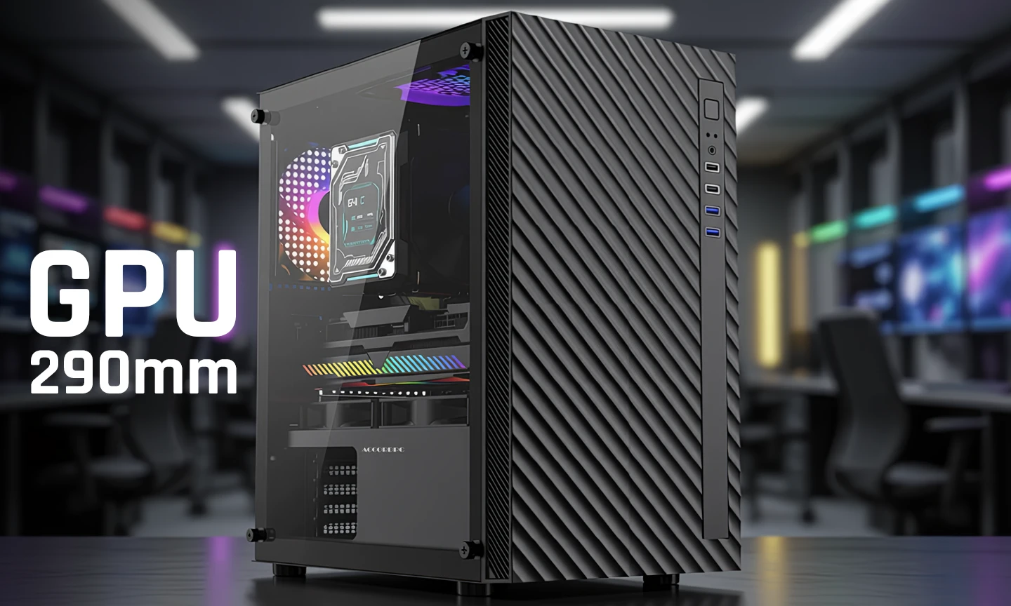 - GPU Clearance: Supports graphics cards up to 290mm.