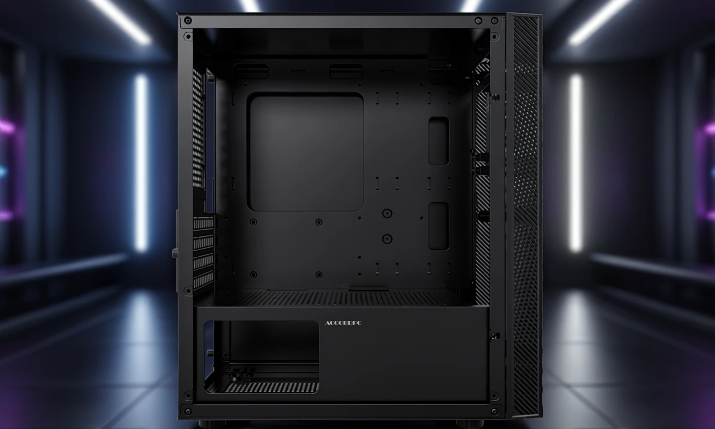 The ACC-508 is engineered for those who demand a clean look without compromising on cooling or component support. With its refined black steel body and optimized airflow paths, it is the perfect enclosure for high-performance mATX systems.