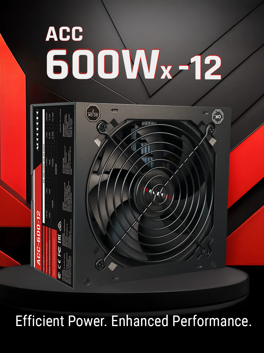 The ACC-W-12 (500W-600W) series is engineered for performance seekers and casual gamers. With Active PFC (APFC) technology, it delivers higher power efficiency and enhanced stability.