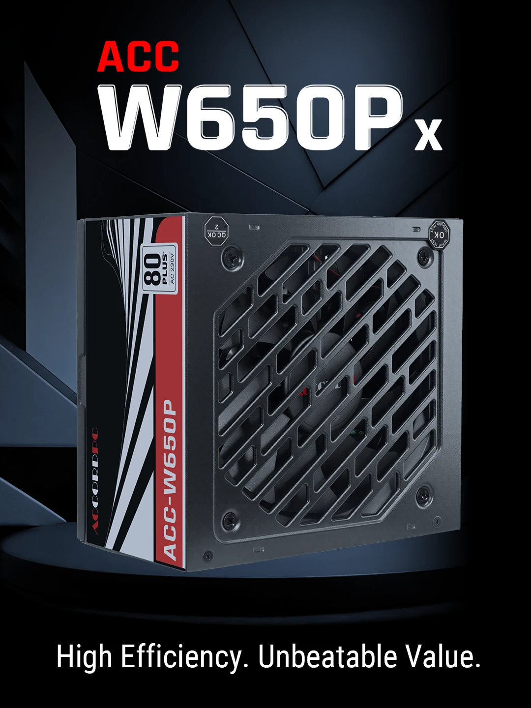 The ACC-W-P series (550W-650W) is designed for smart builders who prioritize both performance and value. Delivering high efficiency and rock-solid stability through its Active PFC design and premium internal components, it ensures your system remains powered during every task. With a modern diagonal grille and flexible black flat cables, the ACC-W-P offers an unbeatable performance-to-price ratio.