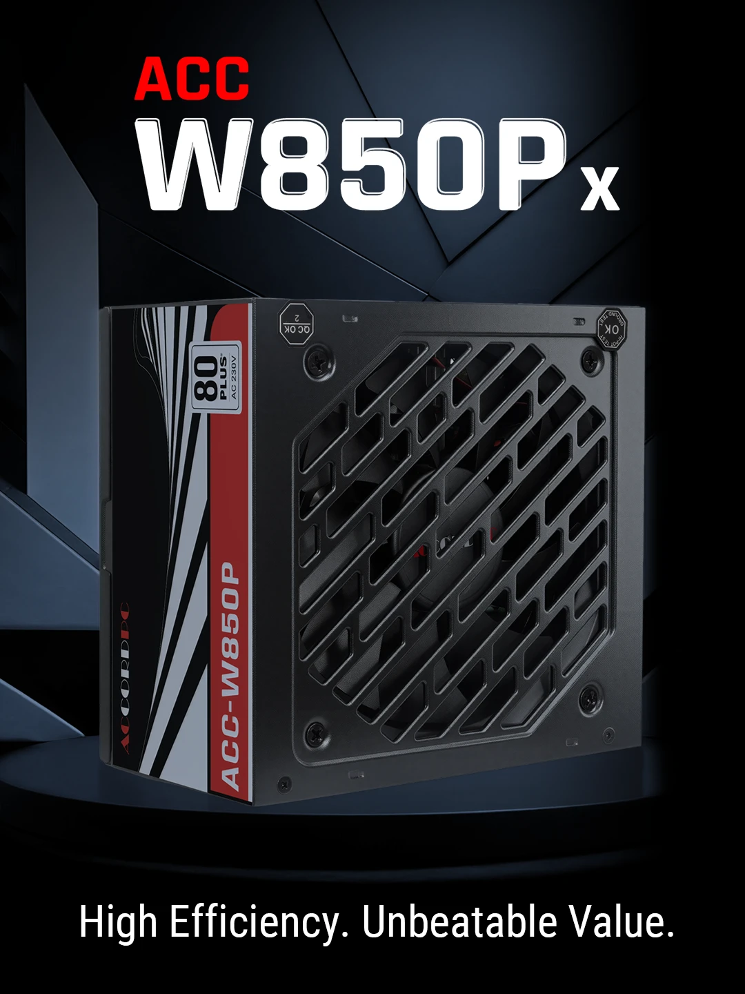 The ACC-W-P series (700W-850W) is designed for smart builders who prioritize both performance and value. Delivering high efficiency and rock-solid stability through its Active PFC design and premium internal components, it ensures your system remains powered during every task. With a modern diagonal grille and flexible black flat cables, the ACC-W-P offers an unbeatable performance-to-price ratio.