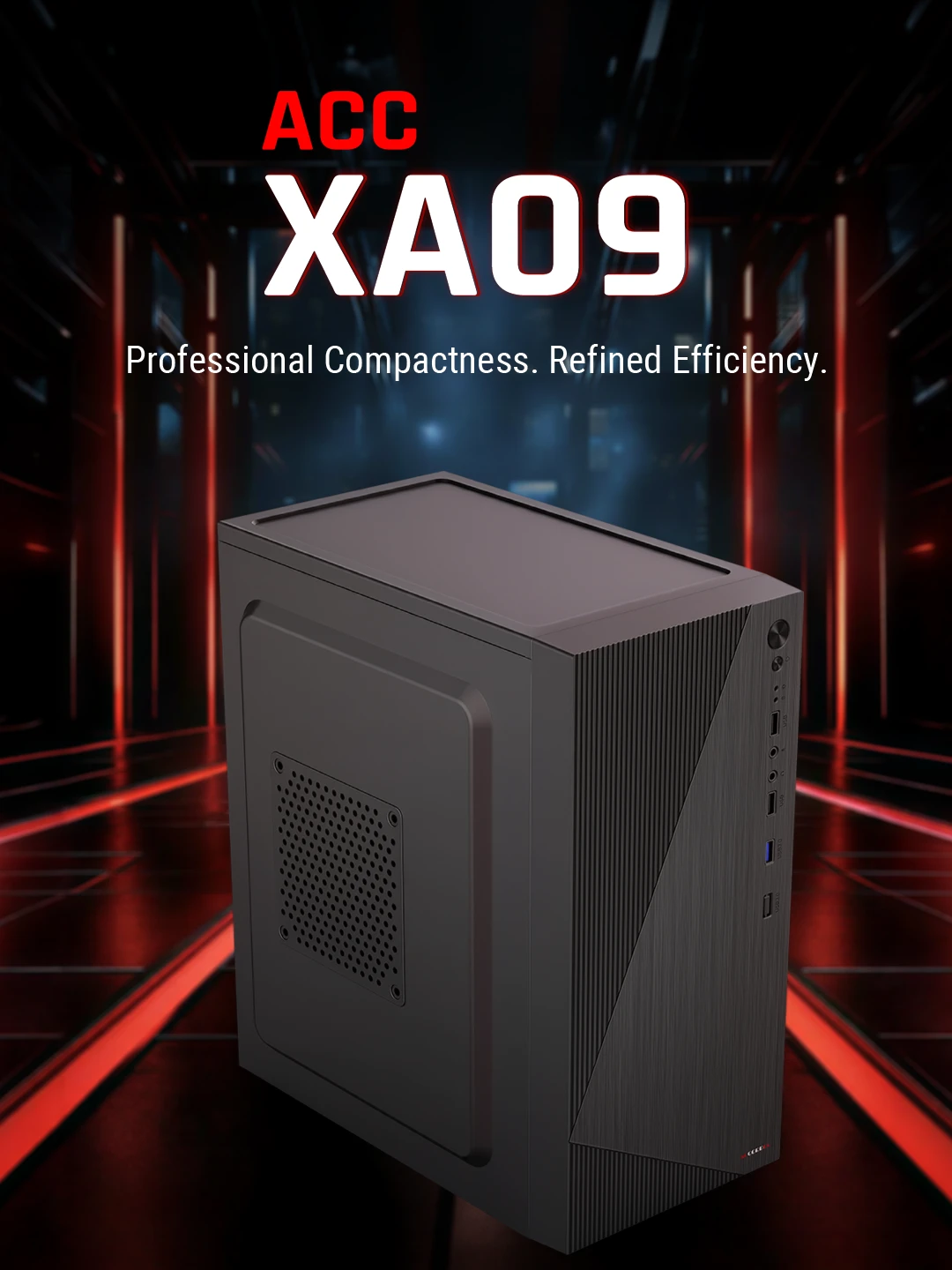 The ACC-XA09 redefines the entry-level workspace by combining a minimalist aesthetic with a highly functional internal layout. This Mini Tower is engineered to house essential performance components while maintaining a small footprint.
