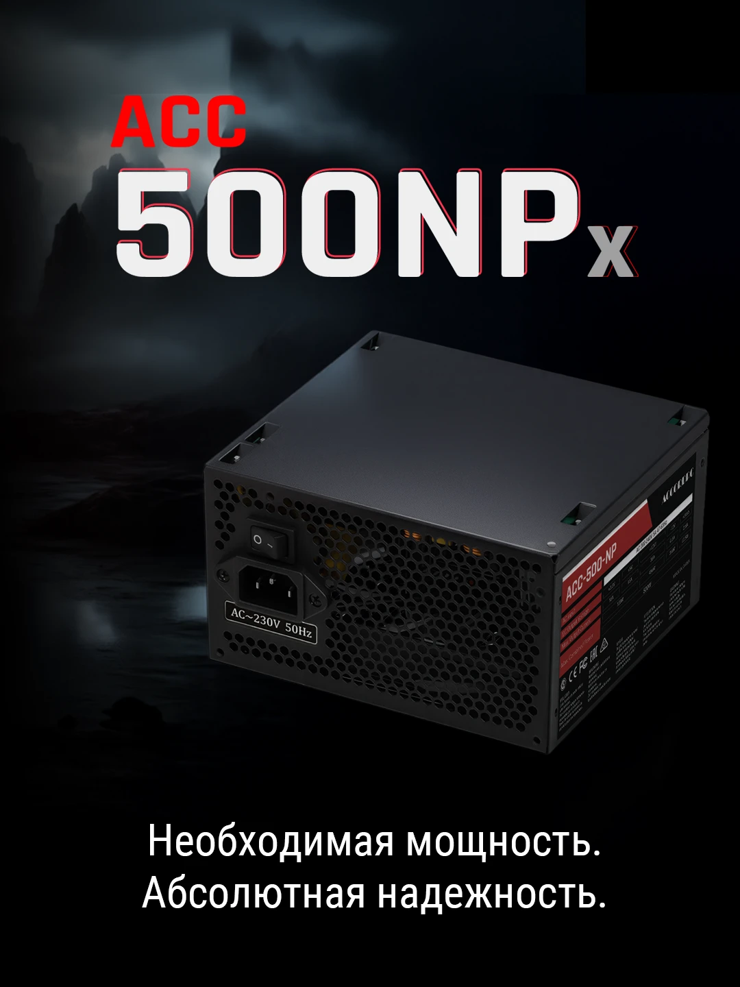 Серия блоков питания ACC-NP — это идеальная основа для массовых игровых систем и профессиональных рабочих станций. Доступная в конфигурациях мощностью 500 Вт, 600 Вт и 650 Вт, она сочетает в себе необходимую производительность с элегантным современным дизайном. Оснащена 12-сантиметровым бесшумным вентилятором охлаждения и скрытыми черными плоскими кабелями.