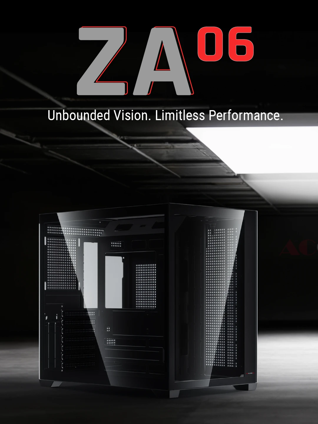 ACC-ZA06 — это премиальный корпус формата Mid-Tower, спроектированный для демонстрации ваших комплектующих через бесшовную панель из закаленного стекла без угловой стойки. Его двухкамерная конструкция шириной 285 мм разделяет источники тепла для превосходного охлаждения, поддерживая до десяти вентиляторов и два 360-мм радиатора.